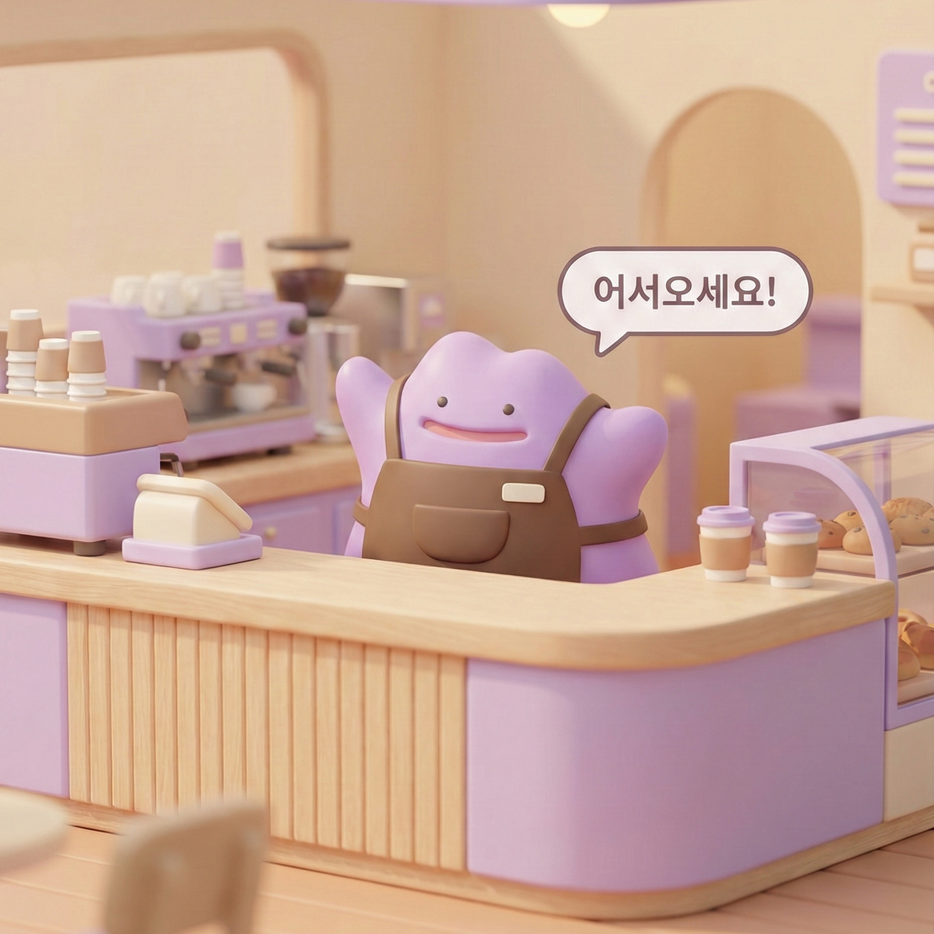 메타몽이 카페를 준비하고 있어요... 💜
